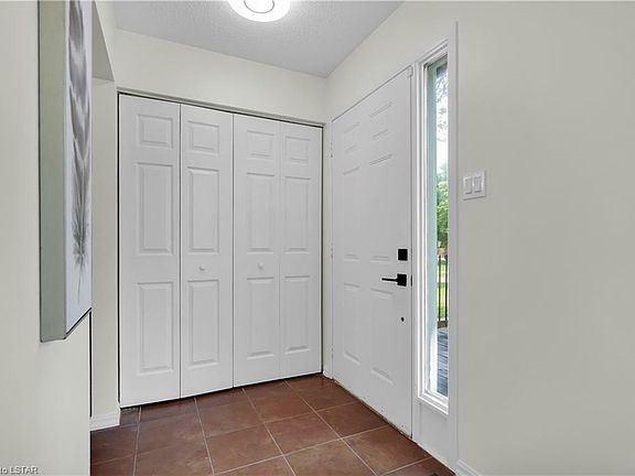 Welcome to this meticulously renovated and impeccably maintained detached 4-level backsplit nestled on a sprawling pie-shaped lot. Enveloped by serene, mature trees and lush greenery, this home resides on a tranquil crescent within a highly coveted, family-friendly neighborhood. Conveniently situated just off Highbury Road, residents enjoy swift access to the bustling thoroughfare of Highway 401, perfect for seamless commuting. Step inside to discover a welcoming ambiance, where a spacious family room bathed in natural light beckons. Adjacent, the inviting dining area, graced by a skylight, provides an ideal setting for cherished family meals. The kitchen, a chef's delight, has undergone a complete refresh, boasting new backsplash, hood vent, lighting, and refinished cabinetry—awaiting your culinary creations. A convenient side door off the dining room leads to an expansive outdoor deck and sprawling yard, ideal for entertaining or tranquil relaxation. Ascend the stairs to find two generously sized bedrooms and a fully renovated 4-piece bathroom adorned with modern finishes and another skylight, infusing the space with warmth and light. Descend to the lower level to discover the grand primary suite, boasting ample closet space and access to a shared, fully renovated 3-piece bathroom featuring a luxurious stand-up shower. The fourth level presents a vast multipurpose area, perfect for an additional living room or home office, complete with a walk-in closet for added storage. Consider converting this space into an extra bedroom to suit your needs. Additional features include an owned tankless water heater and a furnace that's a mere 4 years old, ensuring both comfort and efficiency. Don't miss the opportunity to explore this exceptional residence and fall in love with its unparalleled charm and potential.