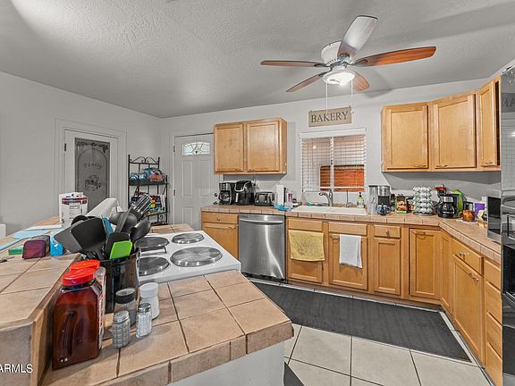 Wow! Check out this super charming home in downtown Wickenburg! Amazing location straight across the street from the beautiful Coffinger Park on a large .64 acre lot. Seller had the AC and water heater upgraded in 2019! Entire home was freshly stuccoed May of 2023. Brand new metal roof installed May of 2023! This property has the character of a 1935 build with modern upgrades for comfort. Has a workshop/storage shed in the back for added storage/hobby possibilities. Oversized back yard is just right for entertaining guests and room for pets! Front porch patio is perfect for enjoying your morning coffee with a gorgeous view of the park and endless mature trees.