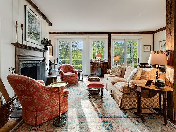 Situated on 5.36 quiet, country acres, this one-of-a-kind converted barn makes a wonderful year round home or weekend getaway! From the moment you walk through the door you are enveloped by the warm welcome feel and you know this place is truly something special. Honestly a picture perfect country home! Completely renovated by the current owners using the finest materials and finishes. With an open floor plan, high beamed ceilings, large stone fireplace, hardwood floors throughout and walls of windows, this is truly a house for all seasons. Boasting both a first floor bedroom suite (Now being used as the most handsome study), a combined living room/dining room opening to a chef's country kitchen, an upper level primary bedroom suite with separate study and full bath and a finished lower walkout level finished with full bath and kitchenette. The deck off the entire back of the house provides wonderful outdoor living and views over the conservation land and marshes with abundant wildlife. The gardens and stonework are simple, but exquisite. A circular drive and detached two-car garage complete the scene. There is so much to love about this special property you will never want to leave home! Lyme, CT is best known for boating, the many coves, the CT River, rolling hills, preserved land, hiking trails, & beautiful sunsets all conveniently located between NY & Boston.