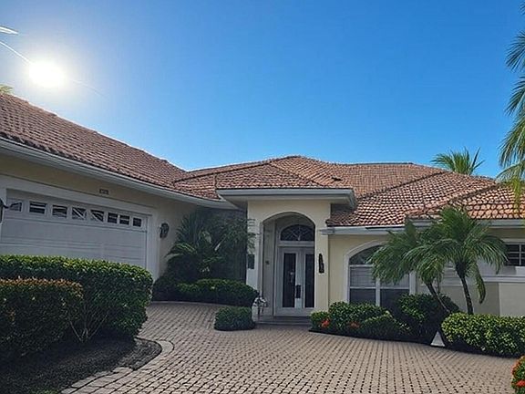 This beautiful RJS Custom built home w/ high ceilings sits up on a raised-fill foundation well above street level having 5br/4 ba - and full laundry room with washer/dryer, tub sink, and counter with plenty of storage above and below, including a under the counter wine cooler and laundry closet. Renovated with marble floors, all new bathrooms and bedrooms, with custom closets, and a large covered lanai with screen enclosure, great for entertaining and family gatherings. The 2 car garage has a Tesla electric charger, an additional refrigerators; with a large lanai and private pool/spa complete the home The backyard is beautifully landscaped with plenty of green area for playing or enjoying the sun as it moves east to west over the yard and pool area.