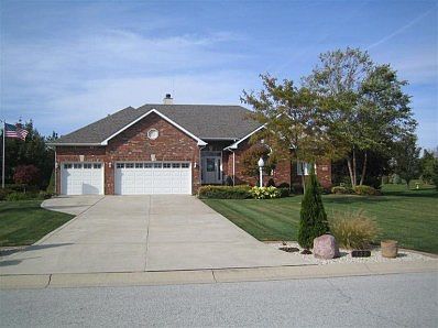 Custom open concept ranch home with finished daylight basement situated on over 1 acre lot in quiet neighborhood in Union Township. Peaceful country setting just minutes from downtown Valparaiso and easy access to Route 30. This home features over 3600 finished sq ft, 3 bedrooms, and 4 baths. Beautiful oak floors and 11 ft ceilings greet you into great room. Double sided fireplace is a cozy touch in this great floor plan. There is also a inviting sunroom right off kitchen with sliders to patio overlooking private yard. Kitchen has center island, walk-in pantry, and loads of cabinets. Master suite features private bath with double bowl vanity, whirlpool tub and separate shower. Finished daylight basement is the perfect spot for entertaining! Storage shelves and cabinets in basement do not stay. Schedule your private showing today!