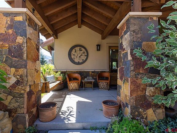 Enjoy SINGLE STORY living in the heart of Durango's stunning Animas Valley. Views of beautiful Missionary Ridge and the red rock mountains abound. Quality construction and high-end finishes are evident throughout this solid luxury townhome. The functional flowing floor plan is exceptional for both entertaining and comfortable daily living. The home features 3 bedrooms, each with their own en-suite full bathroom plus a guest bath. The well appointed kitchen is perfect for cooking and hosting. It features bar seating, a large kitchen island, granite slab countertops, a glass and stone backsplash, under cabinet lighting, stainless steel appliances including a 5-burner gas cooktop with stainless hood, double ovens, a coffee bar, a walk-in pantry and a roomy prep island with sink. Adjacent to the kitchen is an additional dining area as well as a large wet bar with gallery wall behind it. The bar is illuminated by two beautiful hammered copper hanging lights and features storage cabinets, granite counter and a beverage/wine refrigerator. The floor to ceiling stone fireplace is a grounding focal point of the spacious great room and can be viewed from all the main living spaces. Retreat to the oversized primary bedroom and enjoy a large jetted tub, double vanity, linen closet, glass-enclosed shower with seating, toilet closet and a large walk-in closet. Additional amenities of this home include: a natural stone exterior, hardwood flooring, water softening system, reverse osmosis drinking water system, custom closet cabinetry throughout, Hunter Douglas shades, low-E windows, central air-conditioning, 3 large solar tubes to enhance the abundant natural light, smart thermostats and an oversized 2 car garage. The covered rear patio has a gas connection for your BBQ grill and is surrounded by lush landscape providing an intimate oasis for outdoor living/dining. Located in the coveted Trimble Crossing neighborhood you'll have access to the neighborhoods extensively landscaped common spaces with expansive grassy areas, multiple serene ponds with waterfalls, trees, flowers and neighbor social gatherings. The location is truly fantastic. Most of what makes Durango great are just minutes away. Historic down-town Durango (10min) Purgatory Ski Resort (15min) hot springs, Animas River, golf & restaurant, shopping (2/4 min). This home makes an ideal easy living primary residence or lock and leave. The HOA takes care of most things including the majority of the exterior TH maintenance, all the landscape and snow removal from walk-ways, driveways, and roads. See Trimble Crossing HOA website for the extensive list. Homes in this area don't stay on the market long!