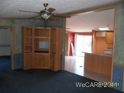 Needing some space Look at this rural country/village setting 3 bedrm, 2 bth. home. This manfactored home has a lot of space that include alarge added on fmlyrm. decks, large garage, and approx. 1/4 acre pond.
