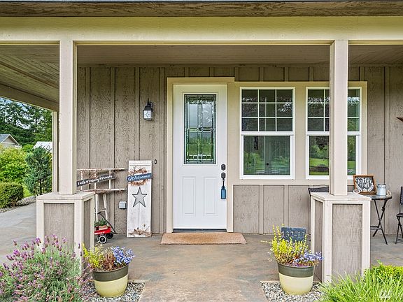 Beautiful custom home situated in a park-like setting on 1/2-acre 10-min off I-5. Adorable wrap-around porch. Beautiful kitchen w/granite counters & stainless appliances. Open concept to living, dining room & kitchen. 2-1/2 baths, laundry room, and plenty of storage. Master has a tasteful bathroom with tile shower, granite counters, tile floor & separate tub. Upstairs, enjoy a family room and 2 additional bedrooms along with a full bath. Big 2-car garage, RV parking and room for your garden!