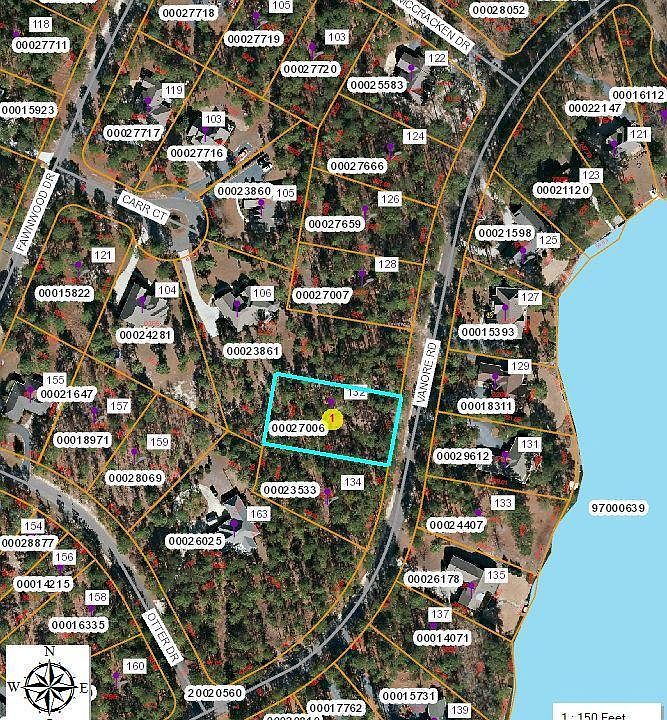Beautiful 1/2 acre lot with views of Lake Auman across the street. Lot slops slightly front to back. There are many mature trees on the lot and there is lots of room to build your dream home. Lot is close to front and back gate and pool. All property owners enjoy the amenities of Lake Auman and Johnson Point. This lot was perked in 2004 for a 3 bedroom home. The permit has expired.