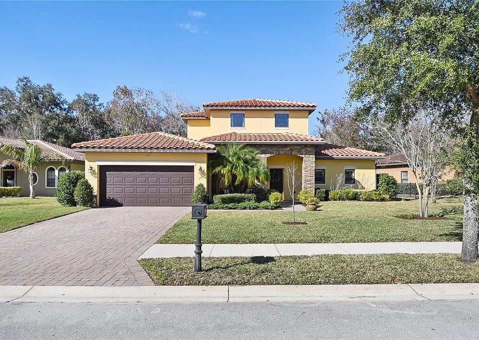 Step into luxury living with this magnificent Mediterranean-style home built in 2013, nestled within the beautiful gated community of Riviera Bella. Situated on an expansive lot teeming with wildlife and a captivating wooded area that gently backs up to the tranquil St. Johns River, this residence is a haven of natural beauty and modern elegance. This two-story gem features 3 bedrooms, 2 full bathrooms, and 1 half bath, providing the perfect balance of space and comfort. The master suite on the first floor is a true sanctuary, boasting a garden tub, a separate large shower stall, double sinks, and a walk-in closet. The tray ceiling in the master suite adds a touch of sophistication to this private retreat. The first level welcomes you with an open floorplan and wonderful architectural detail creating a seamless and stylish flow throughout. Plantation shutters adorn the windows, allowing you to control the natural light and to bask in the beauty of the surroundings while maintaining privacy. The heart of this home is undoubtedly the chef-inspired kitchen, boasting granite countertops, a natural gas stove, and stainless steel appliances, including a refrigerator and dishwasher (recently updated) and a built-in microwave (recently updated). The kitchen opens into a stylish dining room, an ideal space for both intimate dinners and festive gatherings. Venturing upstairs, you'll find a cozy loft area with carpeting throughout and in the additional bedrooms, offering a retreat for relaxation or play. Step outside into your private paradise – an inviting swimming pool with screened lanai. A perfect oasis for entertaining or enjoying peaceful moments under the warm Florida sun. The brick paver driveway and tile roof enhance the exterior aesthetics, showcasing the quality and attention to detail that defines this home. Living in Riviera Bella not only provides access to the St. Johns River from the waterfront park and boat ramp but also offers exclusive amenities at the neighborhood clubhouse. Enjoy a beach-entry pool, fitness center and media room – creating a lifestyle that seamlessly blends luxury, recreation, and natural beauty. Don't miss the chance to call this Mediterranean retreat your home. Schedule a showing today and experience the unparalleled beauty and sophistication of life in Riviera Bella. No worries about power outages, this home has a Generac Generator connected to natural gas that will power the whole house.