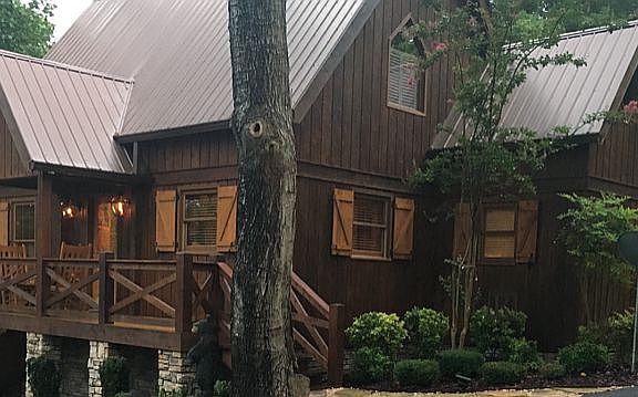 This Southern Living Design Cabin (Eagles's Nest - Plan SL-739, Modified) is a Center Hill Lake getaway you've always dreamed of with Gated Community Security to boot! This beautifully furnished cabin includes Leathered Black Marinace Granite in the Kitchen accompanied by Natural Travertine Stone Backsplash with complimenting Stainless Steel appliances. The Master Bedroom and Family Room both open onto an open air porch with remote retractable enclosure screens . The upstairs Suite has 2 Queen Beds, 2 Flat Screen TV's, plus a Reading/Sitting Area. The upstairs Suite also includes a Full Bathroom. Be sure to peek into the closet for a surprise bonus area which includes a Full-size Daybed with Trundle. This Southern Living Designed Get-Away easily sleeps 8 to 10.