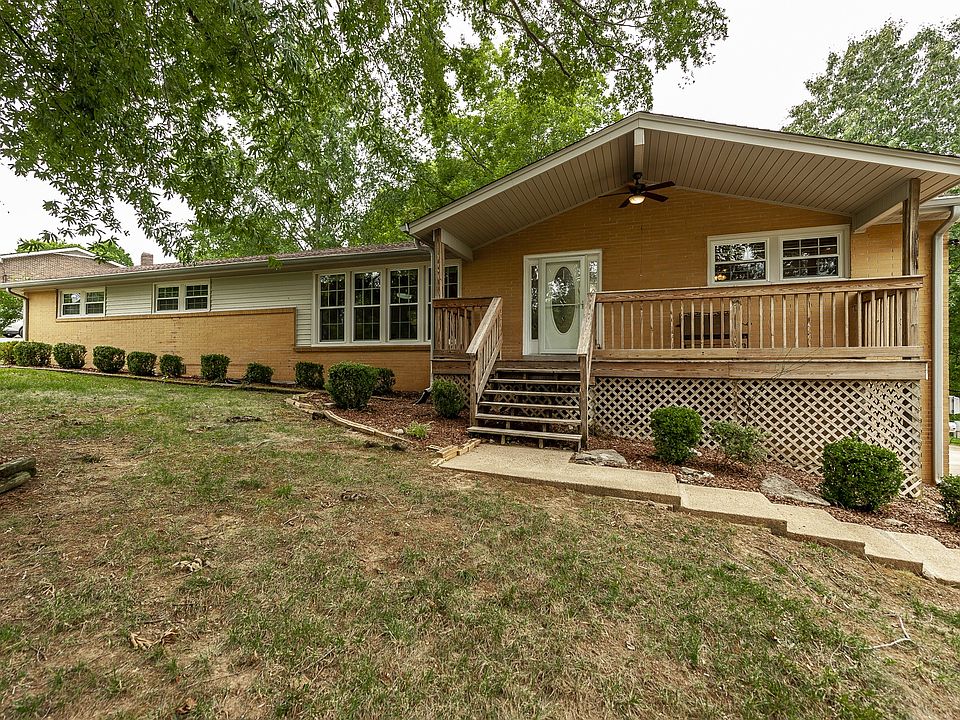 Main level living in this spacious family home. Great Location and Floor Plan! Primary Suite has private bath. Hardwood floors and tile through out the home - no carpet. Replacement Windows and Beautifully Remodeled Kitchen. Large covered front porch and back deck, Mature trees, large yard with a small fenced in area in the backyard. Two Car Garage with space for shop. Tons of parking area. Storage Buildings remain.