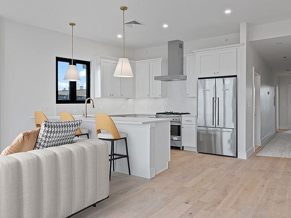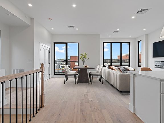 Welcome to the crown jewel of 132 W 9th Street - the penthouse. One final unit remains and we saved the best for last. With almost 10 ft ceilings and over 1300 sq ft of open and airy space dripping in sun light at any time of day. Perfect for entertaining - the kitchen boasts white shakers, Fisher & Paykel appliance package, quartz counters that continue up the walls & 4 seat breakfast bar. This opens to the living space anchored by a sleek fire place and dedicated dining area with front facing private deck. Beautifully tiled guest bath is found down the hall along with your laundry room. In the rear are two king-sized bedrooms, one of which features a walk-in closet and en-suite bathroom which offers a double vanity and walk-in shower. Designer lighting and plumbing found throughout. Nest thermostats, wide plank oak flooring, large common patio. Roof rights and 1 garage parking spot included. December completion.