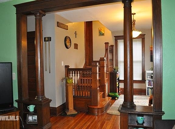 Charm galore! Beautiful woodwork, floors and pocket doors. Updated kitchen with tile backsplash, countertop, sink & faucet and snack bar, 2016. Bathroom also update with tub surround, vanity, mirror and light bar, 2016. Newers also include microwave 2015, gutters & downspouts and washer 2012, furnace, central air, dishwasher and stove 2010, light fixtures 7+/- yrs ago and 4 basement windows. The building next to the garage off of the alley also goes with this property.