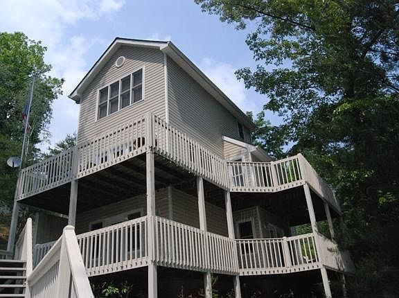 3 Bedrooms, 2.5 baths, plus bonus bunk room. Living room, kitchen, dining and living room and laundry room and wrap around decks on main level. Upstairs is master suite with jacuzzi tub. Lower level is 2 bedrooms, bath and bonus room with decks and steps to the lake and covered dock.Tile and carpet floors. Access to all resort amenities-golf, pool, playground, volleyball and tennis courts.