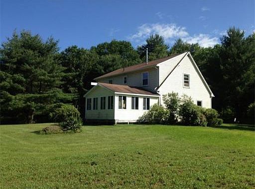 PURE COUNTRY home set back from the road, a location for all ages and “stages” to enjoy! 1700 sf this home's floor plan offer so much living space - inside and out! Nice deck, 2 sheds, 3 season room could be finished for year 'round living! 2.67 Acres, trees, woods, stone wall, a pond nearby! New septic tank just installed, also, new front roof just put on the front of this home!