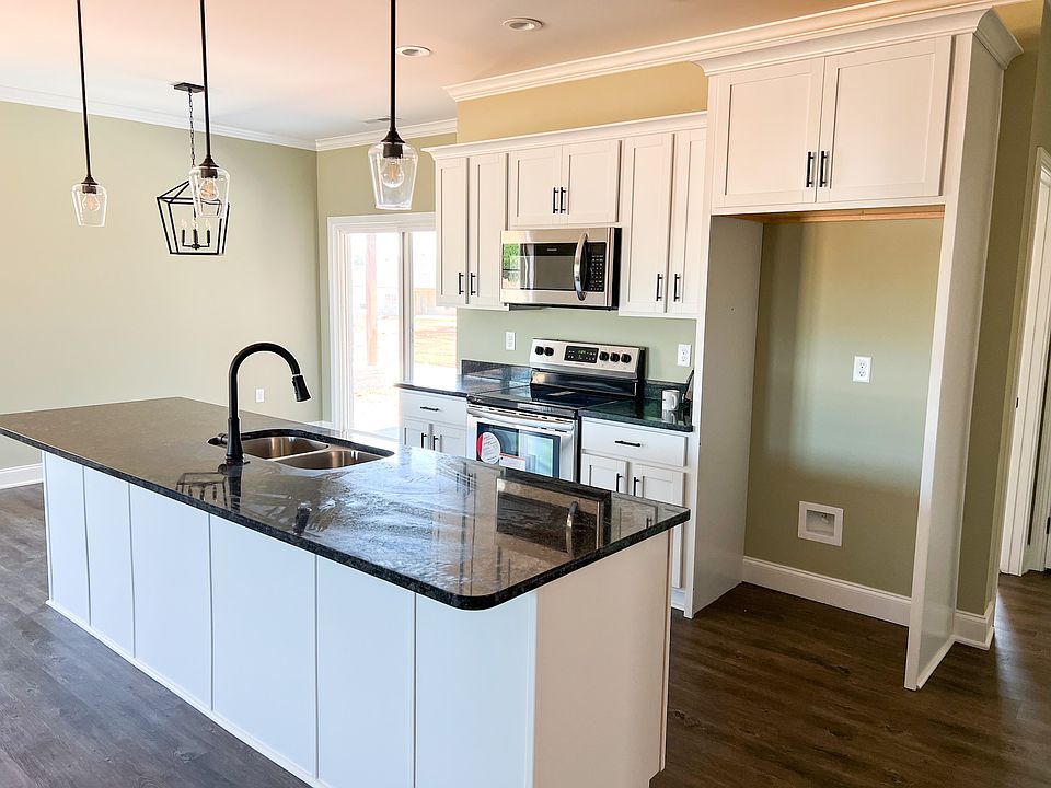 Flexible one-level living is available in the Heritage Morehead Plan by Hammer Homes. An adjacent kitchen sits parallel to the spacious family room. For added living space, the third bedroom can be converted to a study with french doors. The owner's suite, tucked away at the back of the home, feels like a private sanctuary with its spa-like bath and sizable walk-in closet. A conveniently located laundry room enhances everyday living.