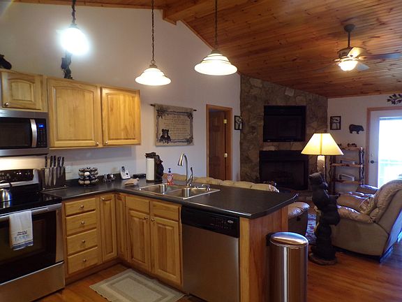 Stay VACATIONED in the beautiful mountains of Northeast Tennessee. Nestled between the Cherokee National Forest and the central waters of Lake Watauga you will find 132 Water Tank Road. Charming cabin boasts one level living with drive up for convenience and ease of access. Dubbed '' Paradise Peak '' the cabin offers uninterrupted long range views of our Blue Ridge Mountain area. Landscaped by nature follow the natural paving stones to the entrance and step into warm wood interiors with cathedral ceilings and a rustic stone fireplace amenity. Galley kitchen to the left offers kitchen cabinetry upgrades and stainless appliance package. Warm and inviting the keeping room boasts '' big sky '' views along with access to the front deck for enjoying morning coffee time or for entertaining guests and relatives. Two spacious bedrooms... to the main offer cathedral ceilings, nice size closets, walk out to secured private outdoor sitting areas and en suites with full appointments. Designed for privacy to the main the cabin offers serenity and tranquility all wrapped in views!! Currently in a very successful rental program the property is income producing and being sold as a ''turnkey'' opportunity. Wait that's not all.. natural half mile walking path leads you to the banks of Lake Watauga where you can enjoy an evening sunset at the water's edge. Come and enjoy the nature and beauty of the mountains of Northeast Tennessee. Within driving distance to Boone, NC, Western North Carolina Ski Slopes and other Tri City area attractions. Being offered at 192k call today and be the first to view 132 Water Tank Road Butler, TN Buyer/buyer's agent to verify all information.