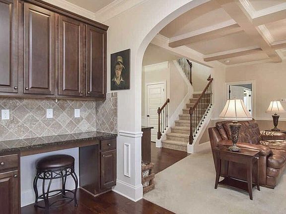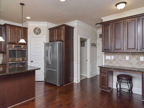• Kitchen: Bar, Counter Tops-Granite, Eat In, Pantry, Island, Floors-Hardwood, Cabinets-Stained, Backsplash-Tiled, Recessed Lights