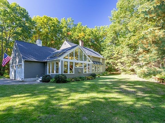A lovely Colonial located in Groton and situated on approx.1.6 acres nestled in a beautiful woodland setting. This Spacious 4 Bedroom, 2.5 Bathroom home has been meticulously maintained and is ready to move in. The first floor has classic hardwood flooring throughout, living room, dining room, family room, sunroom and office. The eat-in kitchen, bathroom and laundry room boast tile. The eat-in kitchen opens up into a stunning sunroom where warmth and light abound. The home office just off the family room makes it easy to work from home. The Main suite is substantial and has a dressing/make-up vanity area, main bath offers vaulted ceiling and skylight for true comfort. The second floor has wall to wall carpet and tile in bathrooms. A finished basement with game room and work shop make this home complete. Nice two car garage provides easy access to sunroom and kitchen. This home is ideally located near, Sargisson Beach, Knop Pond, Lost Lake and Center of town.