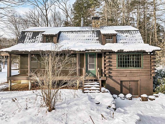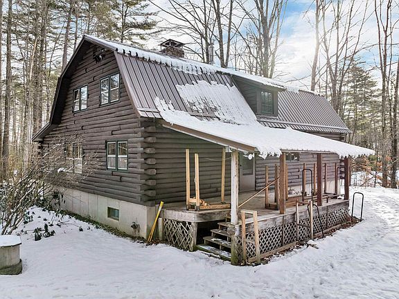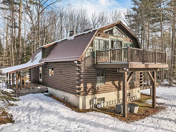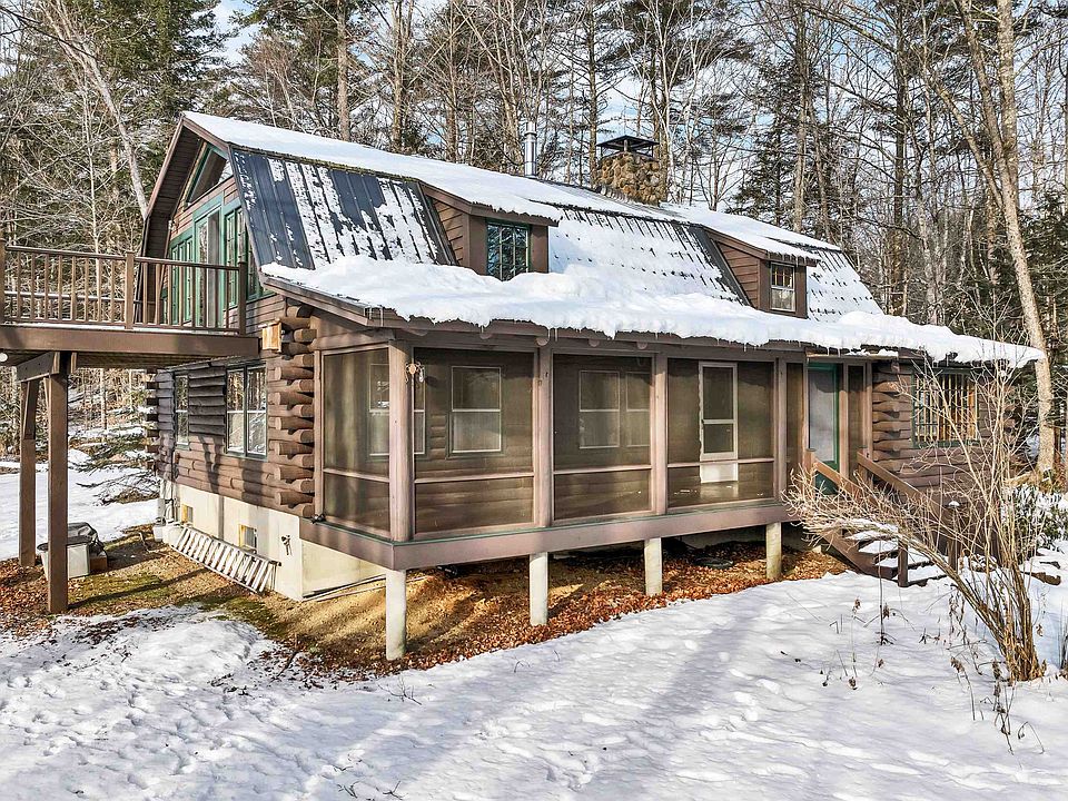 Back Ups encouraged. Continue to show! Nestled in the serene beauty of North Sandwich, this classic custom-built log home offers an appealing blend of rustic charm and timeless features. Surrounded by an envelope of woods, this property is a natural retreat for those seeking room to garden, relax, and enjoy the quintessential New England lifestyle. Lovingly maintained by its owner for 24 years, this well-crafted 2-or 3-bedroom log home spans over 2,000 square feet. The flexible floor plan features spacious living, dining, and family spaces on the first floor, alongside a roomy kitchen and full bath. Pegged wood floors and a central stone fireplace with a wood stove infuse the home with warmth and character. Upstairs, the remodeled primary suite, designed by local builder Richard Benton, is a true sanctuary. With cathedral ceilings, abundant natural light, a soaking tub, a gas-fired wood stove, and a private elevated deck facing west, it’s a wonderful spot to unwind and soak in sunny afternoons and daily sunsets. A second bedroom, a versatile bonus room (ideal as a study or additional sleeping space), and a hall bath complete the second floor. Additional features include a full basement, a large level backyard, a welcoming screened porch in the front, and a covered deck in the back. While some updates may enhance its potential, the home’s log exterior—freshly stained in September—ensures durability and classic beauty.