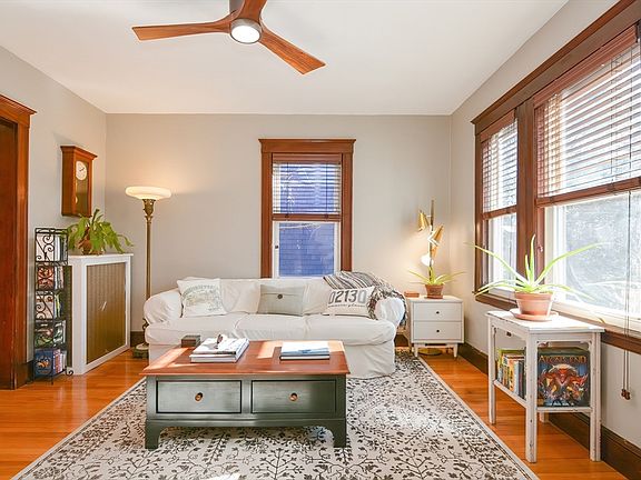Warm & bright upper floor 2-bedroom condo in popular JP neighborhood. Lovely period woodwork and built-in china cabinet. You will enjoy the bright, large kitchen, and the separate dining room is great for special gatherings as well as everyday meals. Hardwood floors throughout. Front and rear private decks, and nature is just out back! The extra-large shared backyard stretches out to a high hill of puddingstone and greenery! Enjoy the great outdoors and privacy while you BBQ, or just relax watching the leaves and birds. And the Minton Stable Community Garden is just a couple of blocks away. Extra storage in the basement, too. And oh! PARKING is included! Exterior was completely painted, shingles & trim repaired in 2023; new roof 2020, chimney rebuilt chimney 2020. Offers will be reviewed Monday, February 12 at 3PM.