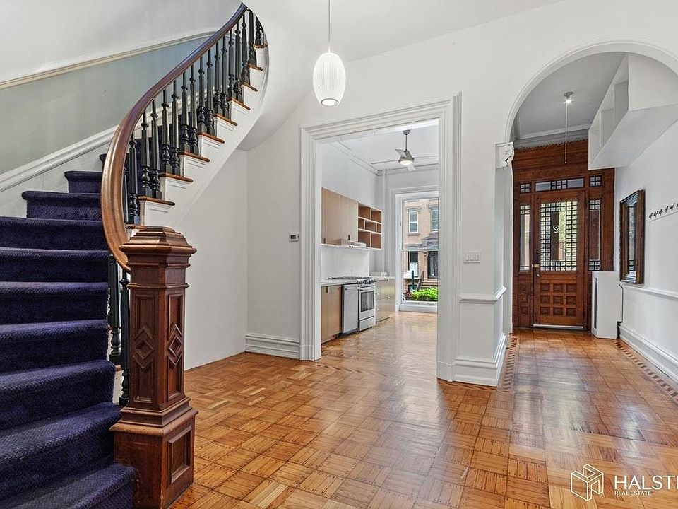 730 SQUARE FEET OF PRIVATE OUTDOOR SPACE! Classic Clinton Hill Brownstone for rent. Renovated with original detailing, 5 fireplaces, high ceilings, large sunny windows in each room and a Brand New kitchen, this four story, 4 bedroom, 3 bath home with two levels of private outdoor space is one of a kind. The 1870's French Second Empire house is 2725 sq ft, and sits on a quiet tree-lined block of prime Clinton Hill. The dramatic first floor is perfect for entertaining with magnificent 11'9"' parlor ceilings, beautifully refinished parquet flooring, a grand fireplace and original molding. The brand new renovated kitchen, designed by Anne Nixon, features Bosch and Sub Zero appliances allowing for modern conveniences combined with original charming detail. A parlor makes for a great spot for breakfast or a quick bite. The spacious living/dining area opens onto a large planted back deck with southern exposure surrounded by roses and honeysuckle that provides shade on hot summer days and wonderful place to relax on a cool evening. A stone stairwell leads to the downstairs yard, which features a private garden with mature trees and plantings and a rustic fire pit. Nice spot to BBQ! On the Second level of this home you find a library media room, and laundry room with Bosch WD and spacious enough to store linens. The master bedroom faces the back of the house and the oversized windows draw brilliant sunlight. Quiet and peaceful it looks out over lovely green trees. Custom designed built in closets is another plus. We should note the size of the renovated bathroom, one of the features that make this home unique. It is spacious enough to include double sinks, a modern shower, and soaking tub. A deep medicine cabinet and large vanity allow plenty of storage. Third floor has a full bath and two large bedrooms overlooking treetops, each with a decorative fireplace. Ample storage space and pleasant views. Now here is another terrific feature. The top (fourth) floor has a bedroom and bath, as well as a kitchenette - a perfect floor for a home office, guest room, nanny or college age kid. All of this, and you are right by the dynamic neighborhoods of Clinton Hill and Fort Greene! Nestled between the Pratt Sculpture Park and St. Josephs College and Several blocks away from Fort Greene Park with tennis courts, dog run and the beloved Underwood Playground. Walk to Navy Yard/Steiner Studios with Ferry service to Manhattan, or enjoy great restaurants on Dekalb and Myrtle Avenues.