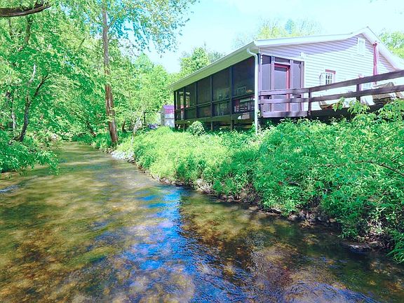 AMAZING creek side setting! This 3 Bedroom 2 Bath home sits on 2 adjoining lots & has a 32 x 8.8 screened porch off the main living area to enjoy the relaxing creek just feet away! Home had an extensive remodel just a few years back & feels brand new! Updated metal roof, New central heat & air system in 2016 & spray foam insulation in crawl space. In the upgraded kitchen you'll find custom cabinetry, granite countertops, stainless steel appliances & lots of storage. The open layout is perfect for entertaining in this great one level living home on a paved road for access. The main living area has hardwood floors, stone fireplace w/gas logs & vaulted ceilings in the foyer and built in home office. You'll find slate floors in the laundry/mud room with ample storage. Master bedroom features custom built in closet features & the tile en-suite bath will leave you speechless. Across the home you'll find 2 additional bedrooms plus another full bath for guests. The large deck has covered & uncovered sections to enjoy the outdoors & the bold creek - the screened in porch also has a TV hookup! Level yard is easy to maintain. Bonuses like the extra lot and storage workshop are a PLUS!