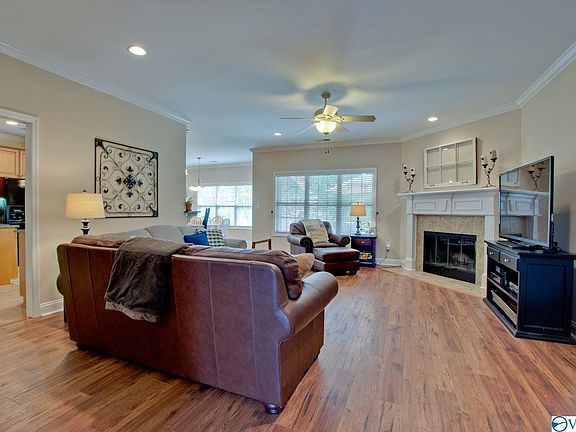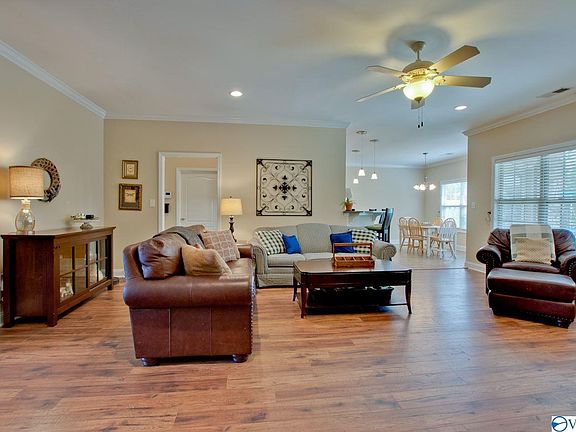 One level, full brick home with all the upgrades and 3-car garage! Open floor plan features a large eat-in kitchen with lots of cabinets, granite counters and bar that opens out to the spacious great room. Gas fireplace and high ceilings. Lots of natural light. Luxury vinyl plank flooring in the living area and master looks just like hardwood but is more functional. Enjoy the privacy fenced backyard with covered patio and in ground sprinkler system. No backyard neighbors since this home backs up to the greenway walking trail. Community clubhouse and pool. Quick access to Hwy 72 and I565. Close to shopping & restaurants. See it before it's gone!