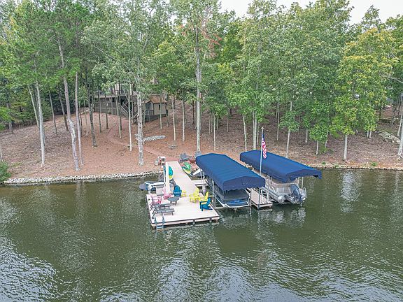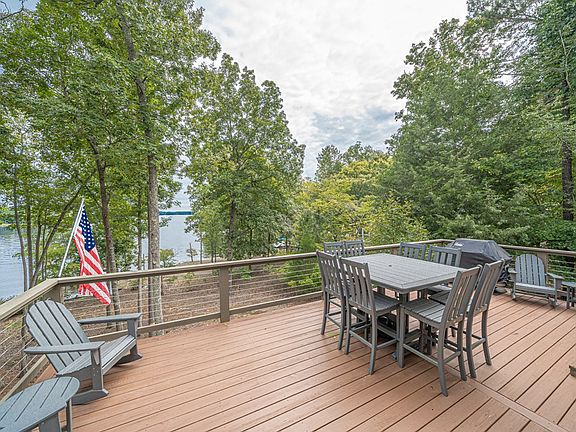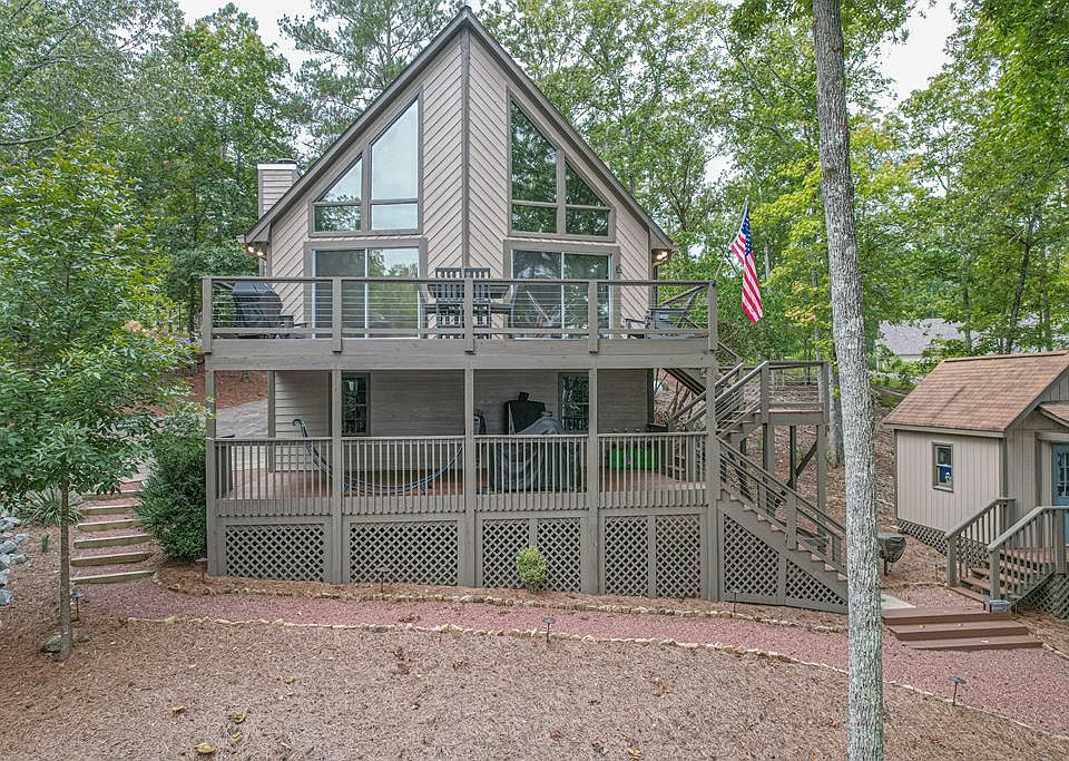 WOW ! This is the one you have been waiting on all year!! It has ALL the things!! SUPERB LAKE APPEAL from the moment you drive onto a private, ALMOST 2 ACRE wooded lot. BEST OF BOTH WORDS - this home has BIG, Main Lake VIEWS, but also tucked in a wide, deep water cove. From the living room experience Soaring, vaulted ceilings, wide plank hardwood floors, updated kitchen w/granite & stainless steel appliances, and Lots of windows to enjoy those views. There are lakeside porches on both the main level and the basement level. 2 bedrooms on the main and an En-suite in the loft. Downstairs you will find a 4th bedroom and TONS of storage. Private, Maximum sized dock at the shoreline AND DEEP WATER AT DOCK. Located at the south end of Lake Oconee known for the jumping rock and beautiful water clarity!