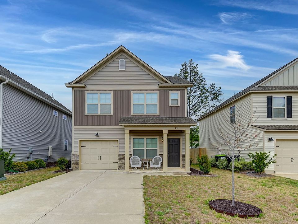 Welcome home to 132 Wisley Garden Dr, a stunning residence nestled in a prime location of Lexington. This beautiful 4 bedroom, 2.5 bathroom home, just a few years old, offers the perfect blend of modern comfort and convenient living. Situated in a desirable neighborhood, this home offers easy access to Lexington, Downtown, and I-26, making commuting a breeze. The kitchen is equipped with essential appliances including a fridge, oven, stove, dishwasher, and microwave. This house also has a washer & dryer! Enjoy the convenience of granite countertops, stainless steel appliances, and an eat-in area perfect for casual dining. Retreat to the spacious master suite located on the main floor, complete with a private bath featuring double vanities and a large walk-in closet. Upstairs, discover three more bedrooms, each boasting ample closet space to accommodate your needs. Relax and unwind in the backyard, which features a patio ideal for enjoying leisurely afternoons or entertaining guests. Zoned for Lexington 1 Schools! This charming home is ready for you to move in and start creating unforgettable memories.