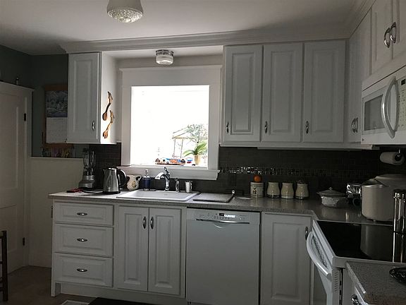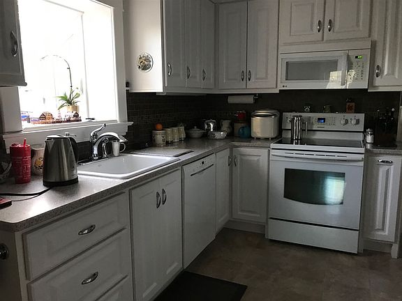Honey, stop the car! This is what you will be saying when you first spot this property. This home has had extensive renovations in the past few years, including siding, roof shingles, windows, electrical, heat pumps, plumbing and more! Lovely open concept kitchen and dining room with newer cupboards and Corian countertops. Hardwood floors in living room and dining room, with newer ceramic and laminate floors in the remainder. Many professionally built built-ins including fireplace, storage cupboards and more. Two baths conveniently located - one on the main floor and one upstairs. Master bedroom is spacious and second bedroom has been expanded to a large bedroom. Main floor laundry at the back. For the handyman, there are 2 heated, wired garages on a 4 foot frost wall complete with hot and cold running water. The heating system in the house is by a Trans electric furnace as well as a Trans heat pump. Lovely private patio at the back with an additional shed. You must see this house. Truly one of a kind.