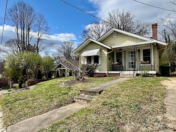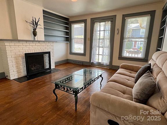 Price Drop! Charming 1927 Mission-style bungalow in desirable Five Points neighborhood! Walk to downtown Asheville, greenways, restaurants, great grocery shopping, and more. This bright and comfortable home oozes historic charm with original doors and trim, hardwood floors, brick fireplace and built-in book-cases, and it also features a new roof and gutters, insulated windows, high efficiency natural gas furnace and tankless water heater, and central air! The kitchen has its original sink with cabinet, an oversized electric stove, vintage wallboard, and a pantry. A sitting room off of the primary bedroom is adaptable to be office or nursery. Washer-dryer hook-ups, ample closets and storage, with more storage in the unfinished half basement with workbench. The lot features a fenced back yard with custom stone patio and a small garden area, a fig tree, heirloom irises, lilacs, camellia, and rose bush. The perfect home to enjoy the best of old Asheville at an affordable price!