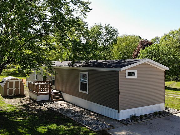 Step through our 3 bed 2 bath single family home by Fairmont at Woods Edge. This open concept floor plan opens up to our large living room with built in entertainment center and leads into our grand kitchen. Entertain at the kitchen island and breakfast bar, with many wood kitchen cabinets for storage, and a full kitchen appliance package. The luxury master suite features a full tile shower with amazon rain shower head. Central AC, 40 gallon hot water heater, washer/dryer hook-ups, crown molding, and ceiling fans complete the interior amenities. On the exterior of the home you will find an 8x10 front deck, 8x10 storage shed, double driveway, gutters and skirting. This home is located on a corner lot with resident access to the community clubhouse, pool, playground, basketball court, fitness room, and fishing pond.