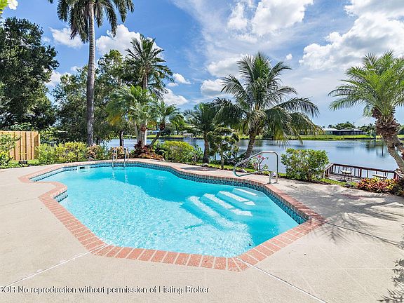 Beautiful lakefront property located in Palm Springs, with front door entry gate enclosure. Well maintained landscaping all around the home. This builders home has new upgraded impact doors and windows. Spacious yard and pool with a private dock that overlooks Lake Palmerito. The home also has a great size 2 car garage with built in shelving and work bench. No homeowner's association fees, rules or regulations (keep your RV or boat on property)! A city with its own police department and a great school district. 2018 roof/ 2018 exterior painted/ 2020 AC/ 2021 new gates and fencing/ 2022 new insulated impact garage door.