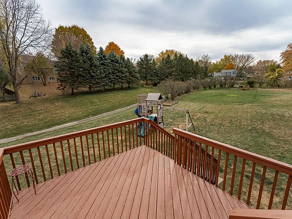 Move in ready 5 bedroom, 4 bathroom home with attached 3 car garage. This is a well maintained 2 story with a fully finished walk-out basement. The upper floor has 4 bedrooms on one level. The primary bedroom has a walk-in closet and private full bath. The bathrooms feature deep soaking tubs with tile surrounds. The kitchen features updated cabinetry, stone countertops, raised eating bar, and stainless steel appliances. The large kitchen window looks out on a park-like yard with a playset. The laundry is conveniently located on the main floor. Some updates include vinyl windows, hardwood floors, fresh paint, high efficient furnace, AC, water heater, water softener, and underground pet containment system. Additional features of the yard include an apple tree, pear tree, and firepit. Make sure to schedule a showing soon!