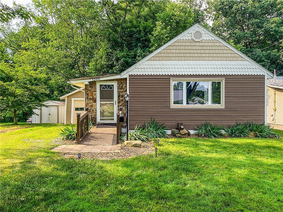 This is a must see house!! A long driveway on a flat lot leads to a beautiful two bed one bath house ready for move in! There is a one garage detached garage with a new garage door as well as a shed and a beautiful patio in the backyard. The home has a spacious entryway with an open floor plan showcasing a beautiful kitchen, dining area, and living room. The first floor also has two spacious bedrooms and a full bathroom. The downstairs is a full basement with high ceilings.