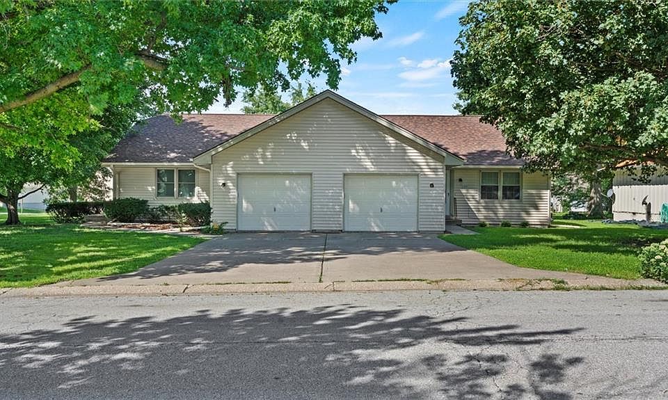 RARE OPPORTUNITY TO OWN A KEARNEY DUPLEX! Each unit offers 2 bedrooms, 1 full bathroom, Kitchen, Spacious Living Room, Laundry Closet and a 1 Car Garage. The property features Nicely Updated Bathrooms, Flooring, Lighting, Paint and Solid Surface Countertops with Tile Backsplashes. NEW Roof and Gutters in 2021. Corner Lot with front doors facing opposite directions for added privacy. Conveniently located near services and amenities with easy access to Highway 33, Highway 92 and I-35. Sought after Kearney School District.