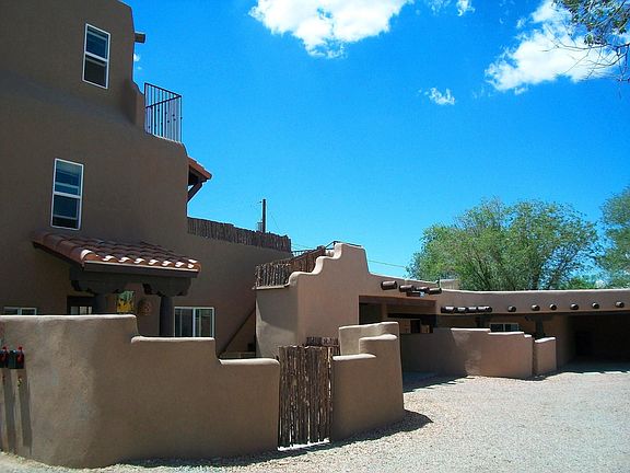 Quaint Corner APT "DETACHED" 2B/1B/1 Assigned/"COVERED PARKING", with Private COURTYARD/Patio, Totally RENOVATED A 1950 ADOBE COMPOUND, this Uniquely designed Compound at the end of Alamo Road near Frenchy Park. Landlords took special care to Renovate & Update this WHOLE Hidden Jewel. This Home has it's privacy; with an attached Carport, BUT detached from the others, with covered walkway to side entrance, totally renovated with Saltillo tile flooring throughout, Diamond finished walls, Original stained Vigas, ceiling fans in every room, lots of windows with mini-blinds, Wood burning stove for heating, along with electric floor panel heating AND gas Heater. Has swamp cooler for cooling, wired for cable. Comes with Gas Stove, Frig, Dishwasher, Micro-wave. There is a small "L" shaped dog run in back for your Pet or for small garden. Back Bedroom is off from living room with closet and front bedroom can be used as an office/guest bedroom, has closet. There is a onsite Coin-operated Laundromat for Tenants with their assigned cabinets for Detergents etc. Maps google: To look at area, click & paste the following: Frenchy's Field/Santa Fe River Trail and scroll to 1320 Alamo Rd. Only 3 Blocks away in walking distance. Utilities; Tenant pays gas, electric & water/sewer. Landlord pays None. Security Deposit: equal to Rent. Pet Friendly with Pet Deposit: $150-$250 depending on pet. $100 Non-refundable. Verifications: Employment with 2 recent payroll stubs, Rental, Credit Score 650+, No evictions, Background checks. Fee $75 per person 18+ years old if Landlord run reports or apply directly on Zillow. Call NOW to make an appointed. OCCUPIED please do not Disturb. Thanks. 12-18 Months Lease term. Tenant to pay ALL utilities Pets welcomed: (Some Restrictions, pls inquire) Limit 2, small to medium. Pet Fee of $150 each, $100 Non-refundable.