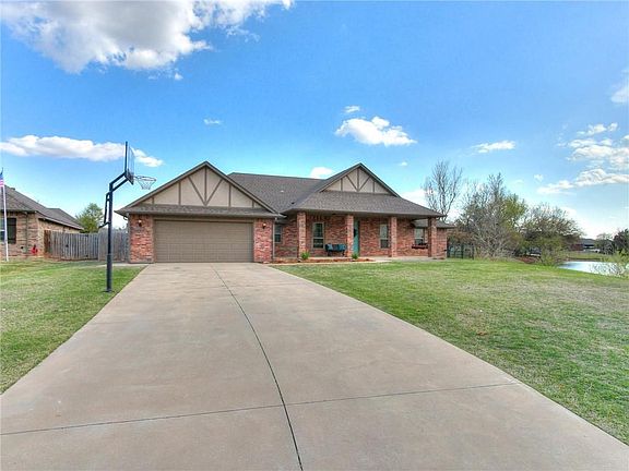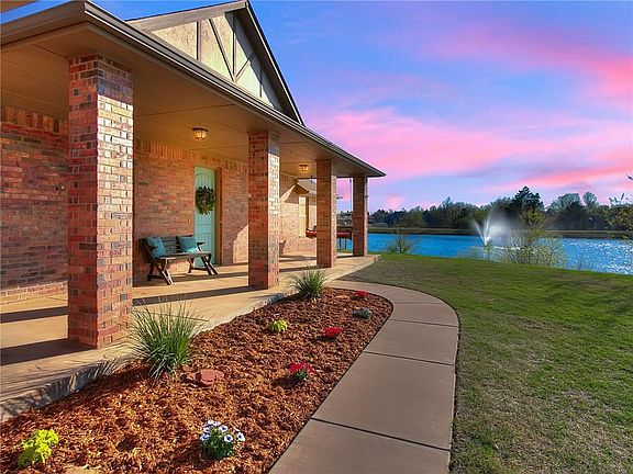 Welcome home to the highly sought after HIGHLAND TRAILS, where community activities are the focal point! This truly amazing home is 4 bedrooms and 2.5 baths, with a true study! The home sits on a large water-front lot tucked back in a serene corner of the community. You can fish or kayak at your leisure or even enjoy the beautiful sunsets while on your front porch. The kitchen features custom cabinets, new stainless steel appliances, new carpet in areas and fresh paint. The kitchen flows into a nice dining area that can fit a large table and provides a breakfast bar. The living room has a great view of the backyard that is perfect for entertaining or spend the evenings cozied up with brick fireplace on. The large backyard overlooks the pond and large trees. Home has brand new roof 05/2023. This home is in the award winning Edmond Public School District too! The community offers a clubhouse, swimming pool, basketball, playground, walking trails and so much more! Welcome home!!