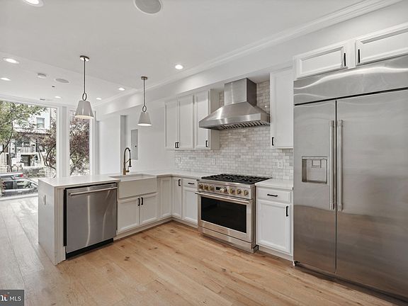 Stunning one bedroom one bath condo in the heart of 14th Street Corridor. This residence offers open concept living with a modern kitchen and an expansive living/ dining room anchored by a stunning floor to ceiling window. The thoughtfully-designed kitchen features a breakfast bar with a quartz waterfall edge island and designer tile backsplash with gold fittings. The chefs kitchen is adorned with premium GE Monogram appliances including a 6 burner gas range with hood, refrigerator and dishwasher. White Oak hardwood floors run throughout while oversized windows flood the home. The spacious primary bedroom is provided with ample closet space, full size washer and dryer while the primary bathroom is outfitted with a marble vanity. Low condo fees. Welcome to 1320 Belmont a newly constructed 6 unit boutique condominium located in one of Washington, DC’s most vibrant neighborhoods, U Street Corridor. Each residence was thoughtfully designed with quality finishes and architectural designs. The boutique condo building is pet friendly. Live steps to Meridian Hill Park & 14th Street corridor. Walking distance to restaurants, shopping, grocery, coffee shops and much more. Easy commute to U St and Dupont Circle Metro stations.
