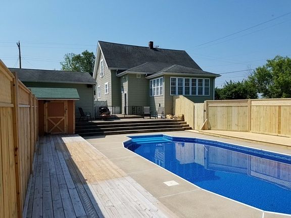 Charm-filled, three bedroom home with two car detached garage and inground pool offered for only $155,000! Just in time for summer, the new pool liner sets off the water sparkle and the brand new privacy fence and poolhouse are definitely added features to this home! Unfinished storage basement provides easy access to stored goods, added attic insulation and programmable thermostat reduced electric expenses, and new water heater and water softener improve the water quality and temperatures. Brand new carpet, fresh paint, laminates in the living room with built-in corner cabinet make this move-in ready house a great home. You'll love the huge closets upstairs, one being 20x6 and another one 10x5! The fully equipped kitchen also comes with 5 bar stools. (exclude portable w/d belonging to housesitter).