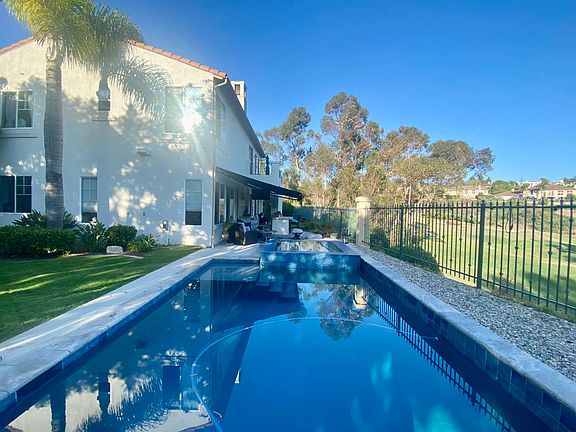 Beautiful Aviara home with expansive views of Aviara golf course. Large lot with large yard with artificial turf & Pool/spa as well as built in grill & bar perfect for entertaining. Gas fire pit for those chilly SoCal evenings. 4 bedrooms up - large primary with beautiful balcony with fabulous views. Large bathroom with spa like shower, his/her closets. 2 secondary bedrooms upstairs share a jack/jill bath as well separate sinks/dressing areas. 4th bedroom upstairs has its own full bath. Downstairs you will find a home office with barn doors next to dining room as well as a garage conversion can be used as a 5th bedroom, Guest room, or play room with its own French doors to outside. Huge kitchen open to family room with large island with storage, new built in refrigerator as well as a beverage refrigerator. Walk in pantry. AC upstairs, whole house fan. Open up the windows & let the coastal breezes in! Lease term is 6 months with possible option to renew if good fit for all parties. *One dog considered on case by case basis with pet deposit. Partially furnished. Excellent schools. A $250 monthly fee will be added to rent for electricity, gas, water & trash. Owner pays for weekly lawn & pool care as well as Quarterly pest control. Absolutely no smoking inside OR outside. This is a quiet street, please be courteous to neighbors, keep noise to a minimum. Absolutely no parties/music past 10pm.