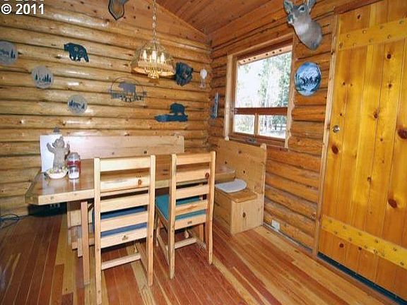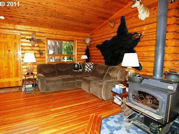 Country Living in a cozy log home on 4+ ac. Features Fir floors,vltd cedar ceilings & tile work in the bath. 2 ornamental ponds stocked with fish/turtles and filtration system. Ready 24x24 shop ,12x14 pump hse,10x12 critter kennel, 20x24 storage bldg, 40x60 clear span bldg wired w/220. All 5 have power.Mature landscaping, Year round pond and amazing territorial views.
