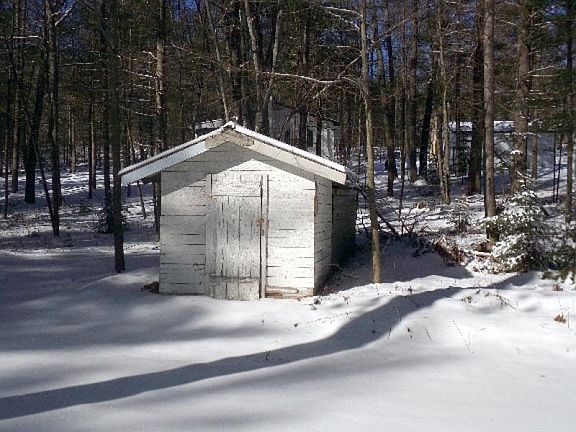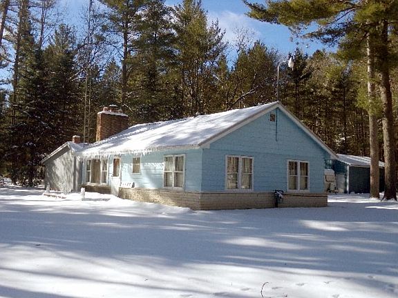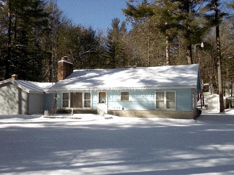 WOLF CREEK FRONTAGE - Mio, 2 bed , 1 bath with brick fireplace, lots of knotty pine, laundry room, NG heat, Newer steel roof, attached garage, 24x32 pole barn all on 1 acre with wolf creek winding through the yard