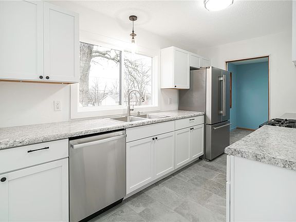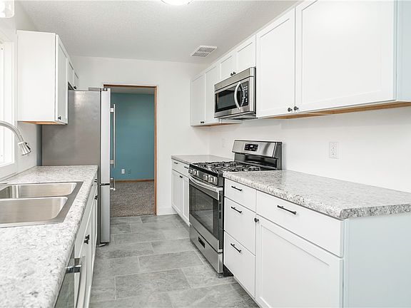 Affordable AND Adorable! This updated Oak Park ranch offers nearly 1,000 finished sqft. The beautiful hardwood floors are restored in the living room with a large picture window. The bright white kitchen with tiled floors, includes a stainless refrigerator, dishwasher, and gas stove. Check out the gorgeous countertops! THREE bedrooms have new carpet and near the updated full bathroom. There is more! Potential for additional future finish in the lower level recently improved by Midwest Basement Systems. Laundry area is near the shower. Exterior features are NEWLY painted metal siding, NEW deck, carport, extra parking space and fenced yard. This location is near a park, schools, shopping area and a quick access to downtown or to I-235. Contact Neighborhood Finance Corporation to learn more about the $10,000 forgivable grant for approved buyers for home projects. Make this gem your next Home Sweet Home!