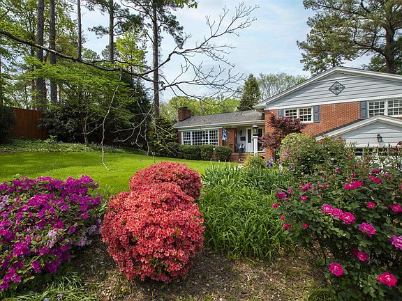 Tucked away at the end of a dead-end street, this charming home provides a beautiful setting right in the heart of Hayes Barton Terrace. Walk to restaurants, coffee shops and shopping at Five Points or the Village District. With lush mature landscaping in the front and back, a vaulted screened porch and patio with a firepit, along with the brand new wooden privacy fence, you can have a backyard oasis of your dreams! Fresh paint inside makes this home move-in ready. Lovely kitchen with a built-in pantry and desk area, two gas fireplaces. Recently updated bathrooms, California closet designs in all closets for maximum storage. The lower level offers a stone hearth, separate office and full bath. The sellers have made extensive updates to the home in recent years, which include new shutters, new roof and gutters, new AC, new fence, landscape lighting, new dishwasher, and epoxy to garage floor.