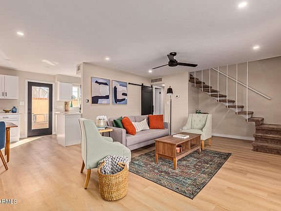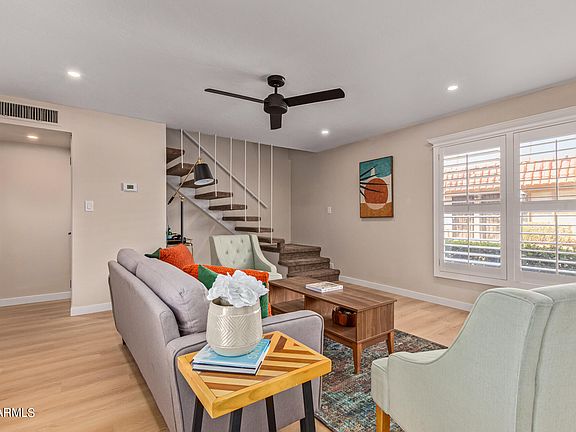 BACK ON MARKET, buyer couldn't perform! PRIME LOCATION in Uptown/Central Phoenix just off the 51! This gated community's HOA includes ALL utilities! Open layout showcasing luxury vinyl flooring, recessed lighting, & plantation shutters. The impeccable kitchen comes w/quartz counters, soft close shaker cabinets & black stainless appliances. Upstairs, you'll find soft carpet throughout. The main bedroom has a walk-in closet & a barn door leading to the private bathroom w/a designer's tile shower/tub. Enjoy beautiful views of the blue sky in the backyard w/ a patio, artificial turf, & a storage shed. Desirably located near Lucy's Marketplace, Culinary Dropout, Pita Jungle, Wildflower and many more amazing dining spots. Schedule your showing today!