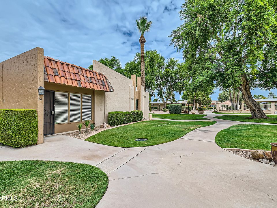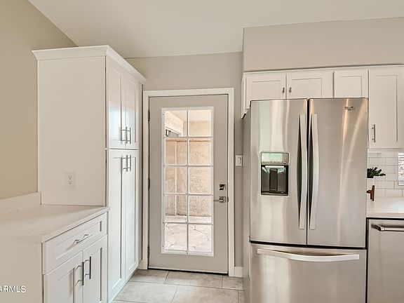 Nicely done unit with neutral colors, many upgrades throughout. Feel at ease as this unit was remodeled start to finish by a professional licensed contractor. HOA includes ALL utilities. When you open the front door, you will see an open floorplan incorporating the family room and kitchen. The kitchen is dressed in quartz counters, upgraded appliances, and soft-close cabinetry. Entertaining is easy with a high-top counter which seats two and enough space for a dining table for four. Each room has ample lighting featuring recessed can lighting with dimmers and fans for additional cooling with a new AC unit installed in April of 2023. As you make your way down the hall to the bedrooms, you will see the stackable washer/dryer. Both bedrooms are large and the closet space has plenty of room with a big walk-in closet in the Master. Both guest and master baths have good cabinet space, with a tub/shower in the guest and a shower in the Master. The guest bedroom is large accenting the large closet. Please notice the new Rockport doors and chrome lever handles. The back patio shows a stamped concrete overlay and there is a storage shed to the rear. This property has a well-kept community pool and has a small workout room. This location is hard to find. It is close to I51, the airport and many wonderful restaurants, the Biltmore, and 15 minutes to old town Scottsdale.