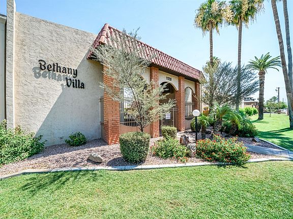 Charming single level 2 bed/2bath townhome in gated Bethany Villa. N/S exposure. Vaulted ceilings. Neutral 2-tone paint. Large living space with tons of natural light. Updated fans and light fixtures. Galley style eat-in-kitchen looks out to oversized rear patio. White cabinets with stainless appliances. Large bedrooms. Master has walk-in closet and oversized shower. Great rear patio for entertaining. HOA cover electric, water, sewer, and trash. Community pool/laundry. Madison schools. Convenient to 51 and N.Central Phx's sought after restaurants/pubs.