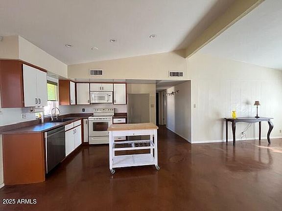 Prime location! Rarely available! *HOA INCLUDES ALL UTILITIES! Single Level Gated Community! This unit is in a quiet and desirable heart of Central Phoenix location surrounded by some of the most prestigious developments.This is a well maintained 2 bedroom condo. Features include stained concrete floors, vaulted ceiling, upscale refrigerator & dishwasher, deep S.S. sink with MOEN faucet, hi-tech water RO system and a 2022 Trane HVAC unit. Master with WI closet. This unit has one of the largest north facing back patio's which stays shaded most of the year. Saltillo tile flooring and a convenient storage room. This is a beautifully landscaped pet friendly community with easy walking and biking access to shopping, dining, fitness center and parks... The community has a pool, clubhouse, gym, BBQ's and a convenient laundry room. Covered parking. There is an effective and professional management company that ensures the property is well cared for.