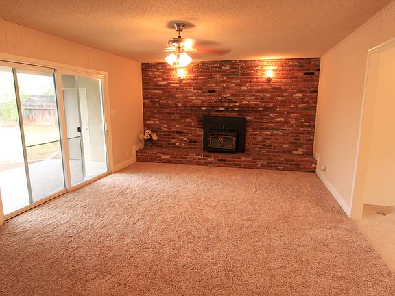 Beautiful headliner 3 bedroom 2 bath centrally located home! As you drive up you will notice the eye catching landscaping, long driveway and appealing color of the house. Entering the home, the foyer has tile flooring and opens to a spacious living room with crown molding. Kitchen boast new appliances, granite counter tops with exquisite tile back splash and tile flooring. Family room has a brick fireplace for those cold winter nights and is open to the living room which makes it great for those family gatherings. The front 2 bedrooms have organizers in the closets and ceiling fans. Guest bathroom dual sinks, new faucets, granite counter tops, tile floors and a beautiful tiled bath area. Master bedroom includes a walk in closet, and a private bath with gorgeous granite counters and custom tile shower. As if this wasn't enough? This lovely home includes new carpet, fresh paint, 6 inch baseboards throughout, dual pane windows,raised panel doors,covered patio and a sparkling pool.