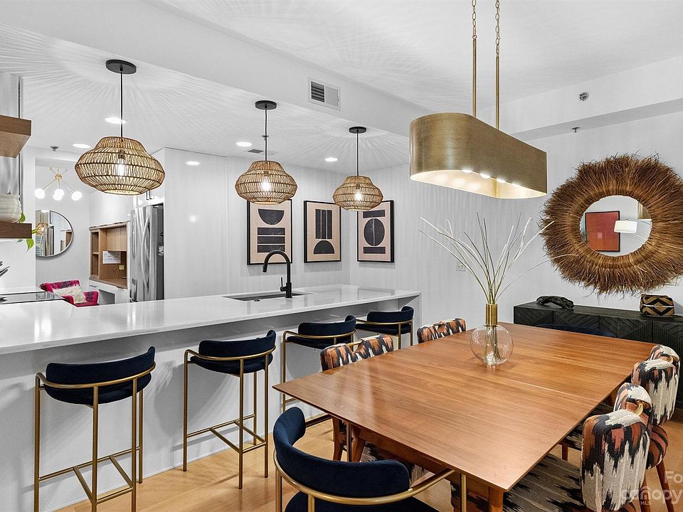 Renovated condo with modern vibe in the center of Dilworth. Located in popular Latta Pavilion, the home features custom hardwoods, built-in custom cabinets, custom tile, quartz waterfall countertops, and much more. Large master with walk-in closet. Features additional office space that could be used for guests with possibility of adding a Murphy or Day Bed. High end finishes and plantation shutters throughout the home. Renovation completed in 2022. Private patio off interior courtyard with landscaping. The quality and designer finishes in this home are unique and difficult to replicate at this price point. With its central location, home is walkable to all Dilworth and East Blvd have to offer...including the light rail and Southend. HOA financially strong and residents very involved. Latta shares amenities deck and gym with 1315 East Condominiums. Deeded storage and parking with convenient additional guest and on street parking. See showing instructions for storage/pking instructions.