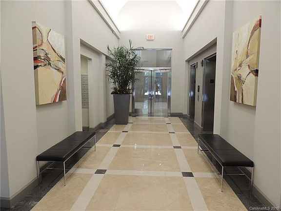 Fabulous 4th floor corner unit w/abundance of natural light!. Includes 2 deeded secure parking spaces, secure storage, granite countertops, stainless appls, private balcony. New Heat pump 2011.Washer, dryer and refrigerator do convey. In-building dry cleaning service, recent lobby upgrades. Ideal location for walking to nearby restaurants & shops including a Harris Teeter right across the street. Short walk to Freedom Park and the "booty loop". Easy commute to Uptown or walk to CMC.